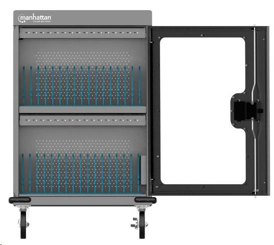 MANHATTAN nabíjací vozík - 32 portov, 576 W, prepäťová ochrana, tiché vetranie, kovový kryt, čierna farba