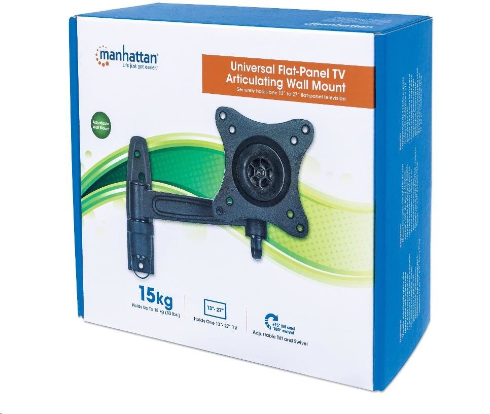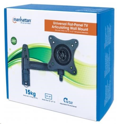 Prekonajte zvláštny pôdorys, nepríjemné oslnenie alebo nevhodné umiestnenie nábytku, ktoré môže obmedzovať pôžitok z vášho plochého televízora. Univerzálny kĺbový nástenný držiak na plochý televízor Manhattan sa zloží takmer naplocho k stene a bezpečne sa vysunie na silnom ramene, aby vám pomohol dosiahnuť najlepšie pozície na sledovanie takmer z ktoréhokoľvek miesta v miestnosti. Tento kĺbový nástenný držiak je kompatibilný so štandardom VESA a je vyrobený z kvalitných materiálov, takže sa hodí pre rôzne veľkosti displejov a umožňuje bezpečnú a istú inštaláciu televízora nad podlahou. Perfektne sa hodí na montáž televízora v obývacej izbe, spálni alebo pracovni, ako aj na komerčné použitie v hoteloch, učebniach, konferenčných miestnostiach, na digitálnu reklamu a podobne. Univerzálny nástenný držiak na plochý televízor Manhattan, nech ho nainštalujete kamkoľvek, vám poskytne najlepší zážitok zo sledovania televízora.