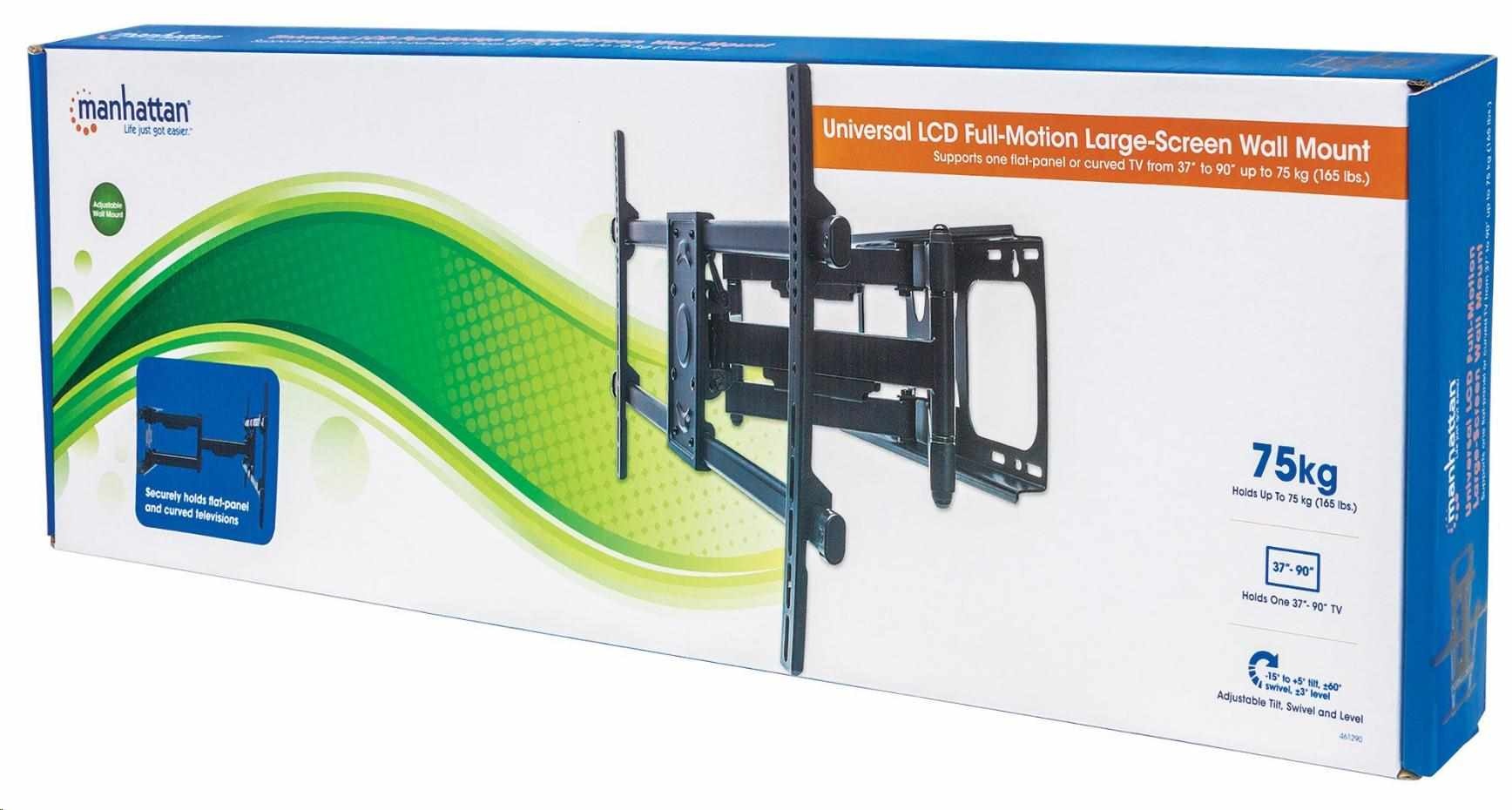 Overcome an odd floor plan, annoying glare or awkward furniture placement that can limit the enjoyment of your flat-panel TV. The Manhattan Universal LCD Full-Motion Large-Screen Wall Mount uses heavy-duty steel so you can safely extend your TV to find the best viewing position from almost anywhere in the room. VESA-compliant and constructed of quality materials, this wall mount fits a range of display sizes for a secure and confident above-the-floor TV installation. It's the perfect fit for mounting a TV in your living room, bedroom or den, as well as for commercial uses in hotels, classrooms, conference rooms, for digital signage and more. Wherever you install it, the Manhattan Universal LCD Full-Motion Large-Screen Wall Mount puts the best TV viewing experience front and center.