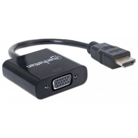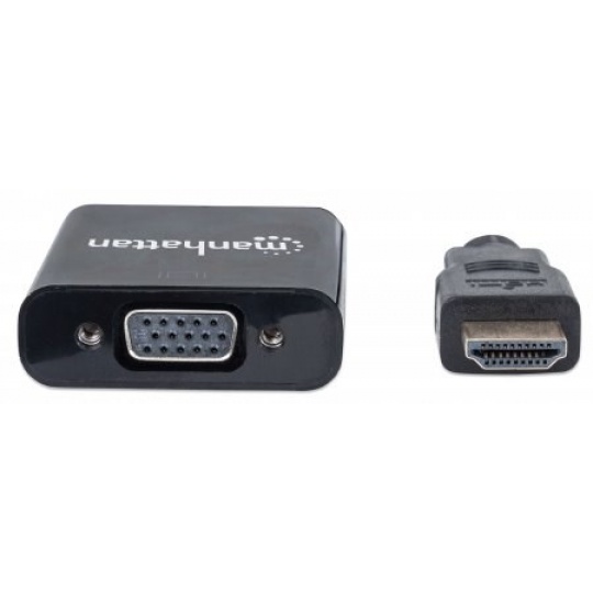 MANHATTAN Prevodník HDMI na VGA (HDMI samec na VGA samica, čierny, Polybag)