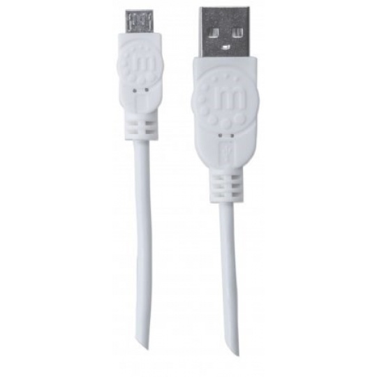 MANHATTAN Pripojovací kábel USB 2.0 A samec / Micro-B samec, 1 m, biely