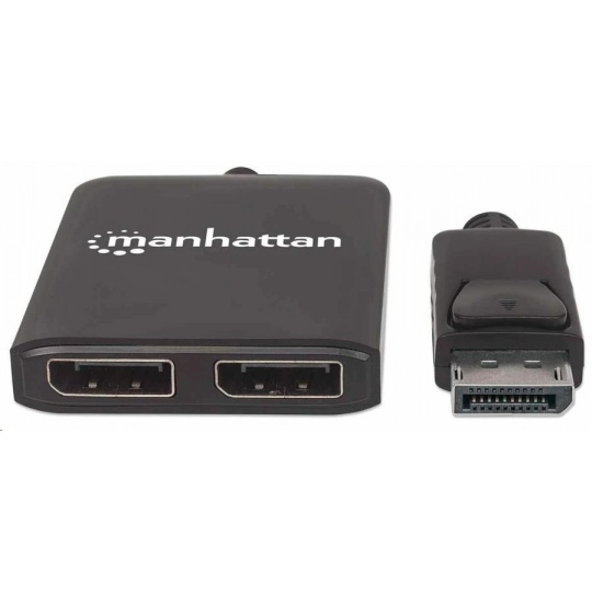 Rozbočovač Manhattan DisplayPort na duálny DisplayPort - MST prenáša signál 4K DisplayPort (DP) z jedného zdroja UHD až na dva displeje UHD.
