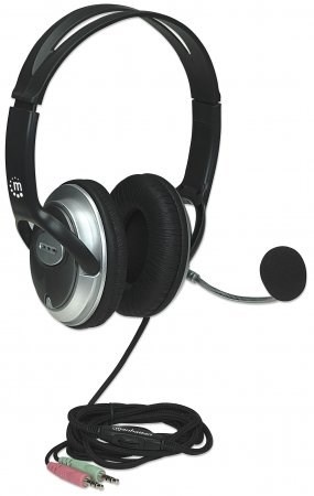 The round metal ear cups of the Manhattan Classic Stereo Headset feature well-padded, cloth-covered cushions to help buffer unpleasant sounds from the ear and enhance super-bass response. The split outer headband and padded inner sling provide a comfortable fit for almost any listener. An in-line rotary control provides fingertip convenience for quick volume adjustments to accommodate varying listening conditions. The integrated microphone with flexible gooseneck boom is ideal for instant messaging, VoIP communications and multimedia experiences. A foam microphone cover is included to help reduce “pop" and distortion for clear voice transmission. The long cable is covered with a durable nylon mesh jacket to help protect it from damage and wear. Installation and use with desktop and notebook computers is easy with dual 3.5mm dual stereo plugs.