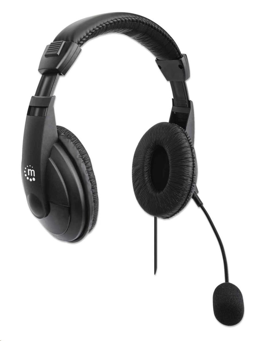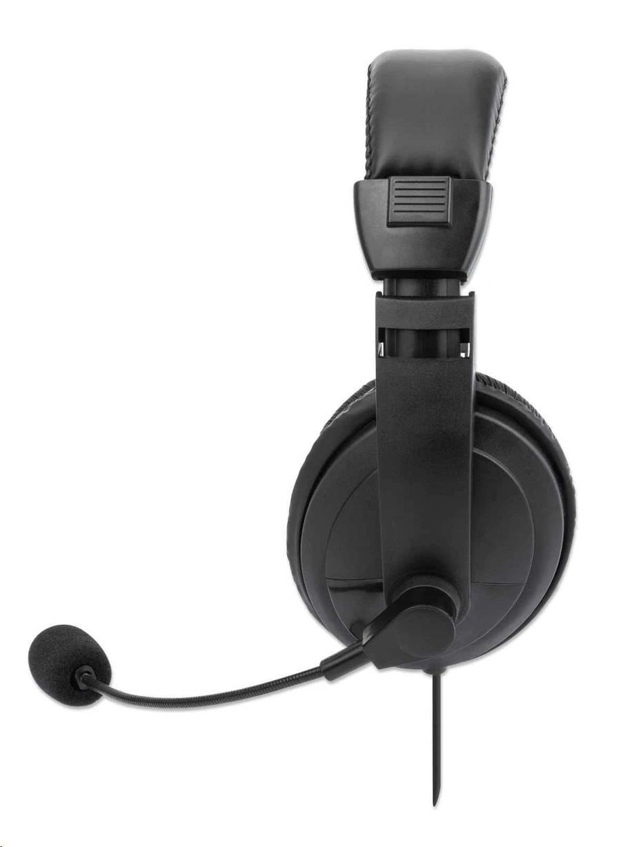 Stereo USB headset Manhattan zaťažuje iba zvuk. Ľahký, nastaviteľný polstrovaný hlavový most a ultra mäkké náušníky umožňujú hodiny používania. Flexibilný mikrofón na ľavej strane je možné optimálne nastaviť pre najlepší prenos hlasu a počas prestávok v rozhovore ho sklopiť dozadu.