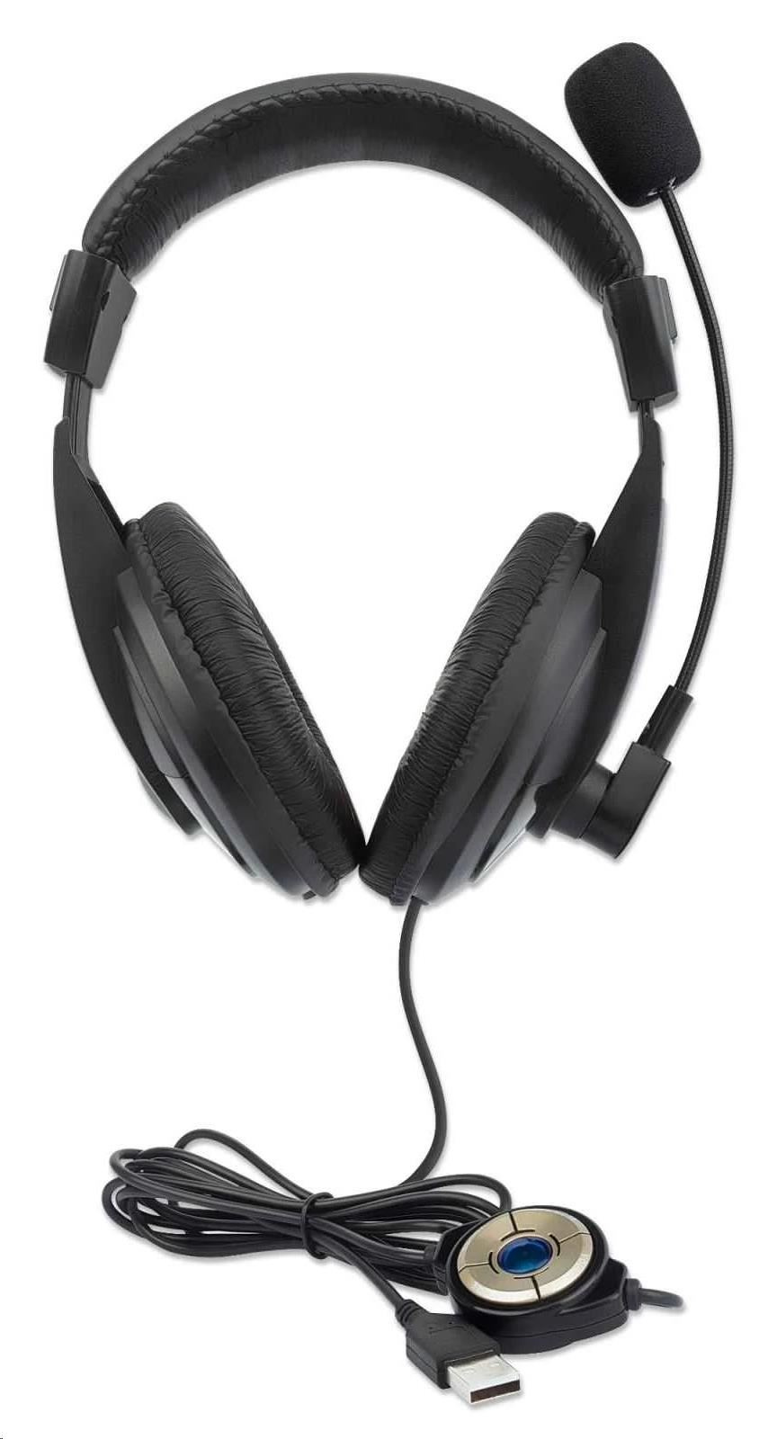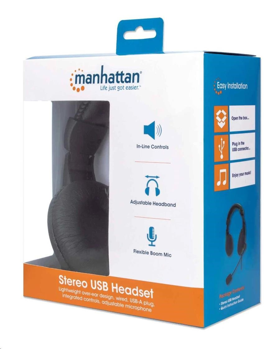 Sluchátka s mikrofónom Stereo USB Headset, box, MANHATTAN