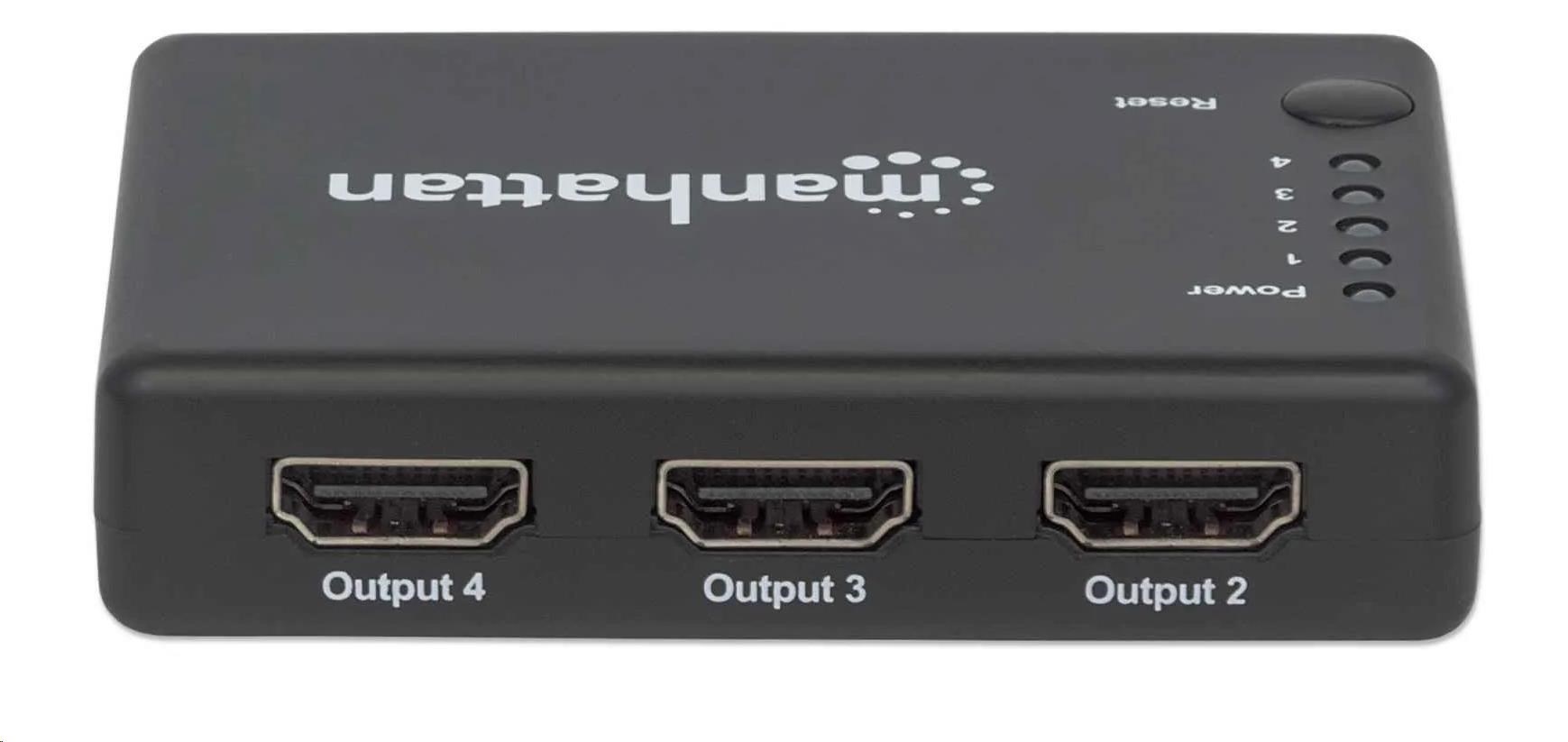 Rozdeľovač Manhattan 4K HDMI je ideálny na výstavy, do učební, na videokonferencie, domáce kiná, prezentácie a maloobchodné aplikácie a je vybavený vstavaným zosilňovačom na zvýšenie sily signálu. Je to dobrá voľba na rozdelenie a distribúciu synchrónneho signálu na viacero displejov 4K HDMI, keď je zdrojové zariadenie vzdialene uložené v zabezpečenej miestnosti alebo skrini. Kaskádové zapojenie viacerých jednotiek až do troch úrovní na výstup videa/audia HDMI na ďalších displejoch v široko distribuovaných aplikáciách.