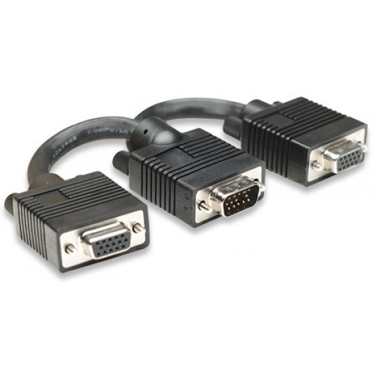 MANHATTAN SVGA Y splitter, HD15 Male / 2 HD15 Female, 15 cm, čierny