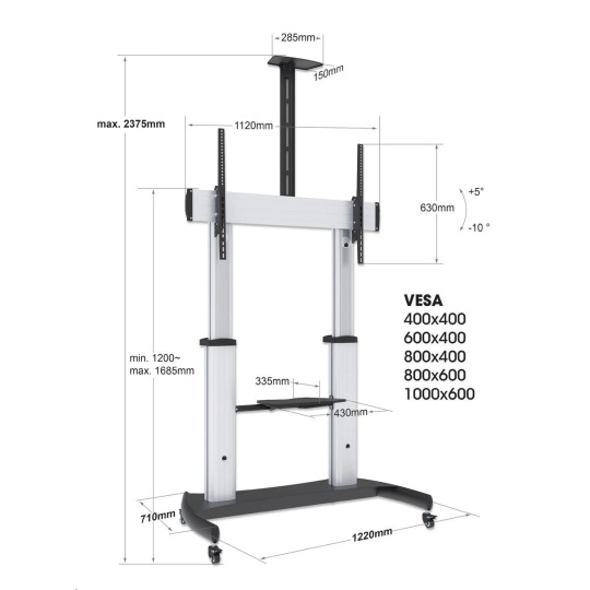 - Height-adjustable from 1200 to 1685 mm (47.2 to 66.3 in.)