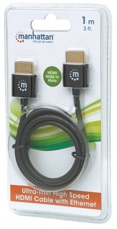 HDMI sa stalo štandardným digitálnym pripojením, ktoré poskytuje najkvalitnejší zvukový a obrazový signál prostredníctvom jediného kábla. Vďaka ultratenkej konštrukcii odolnej voči zamotaniu, pozláteným kontaktom a pevnému, ale tenkému PVC plášťu sú ultratenké vysokorýchlostné káble HDMI Manhattan starostlivo skonštruované tak, aby spĺňali vyvíjajúce sa potreby trhu s ultra vysokým rozlíšením. Vysokorýchlostné káble HDMI Manhattan poskytujú najvyššie možné rozlíšenie 4K x 2K, spätný zvukový kanál a šírku pásma 18 Gb/s pri frekvencii 600 MHz. Tieto vysokokvalitné káble poskytujú video s veľmi vysokým rozlíšením a viackanálový digitálny zvuk so zvýšenými výkonnostnými charakteristikami a vyššou presnosťou. Rozšírené funkcie zahŕňajú pripojenie k internetu pre zariadenia domácej zábavy pomocou jediného pripojenia HDMI. Vďaka jedinečnému dizajnu tohto kábla sa s ním navyše ľahko manipuluje a tvaruje bez obáv zo zasekávania a zamotávania.