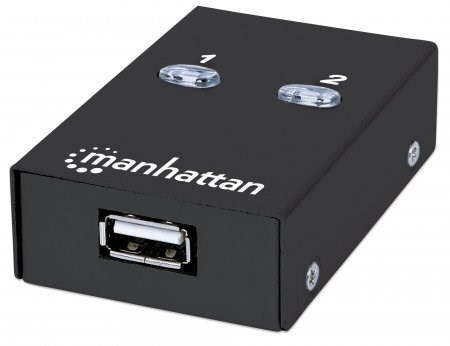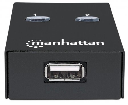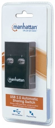 manhattan Hi-Speed USB 2.0 Automatický prepínač zdieľania ľahko umožňuje dvom počítačom zdieľať zariadenie USB. Je ideálny na domáce a kancelárske použitie, keď používatelia potrebujú zdieľať káblový modem USB, tlačiareň, digitálny fotoaparát, skener, externý úložný disk alebo iné periférne zariadenie. Použite pohodlné prepínanie prístupu na požiadanie na aktiváciu jediným kliknutím na tlačidlo na obrazovke alebo použite prepínače na palube na manuálny výber aktívneho počítača.