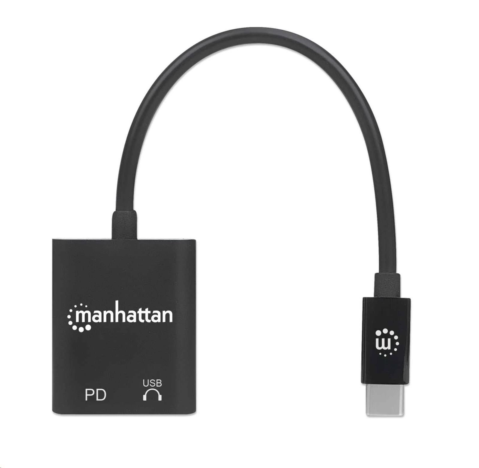 MANHATTAN USB 2.1 zvukový adaptér, USB Type-C na C/F (audio) a C/F (PD) čierny, maloobchodná krabica