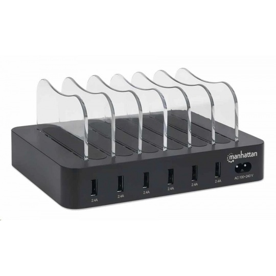 Prenosná elektronika s rozhraním USB kladie vysoké nároky na napájanie batérií a 6portová nabíjacia stanica Manhattan USB pomáha udržiavať vaše tablety, mobilné telefóny, digitálne fotoaparáty a ďalšie zariadenia nabité a pripravené na použitie. Táto nabíjacia stanica sa pripája do akejkoľvek štandardnej zásuvky a ponúka rýchle nabíjanie. Stanica s celkovým výkonom 50 W ponúka technológiu Smart IC na optimalizáciu nabíjania zariadení. Každý port podporuje až 5 V/2.4 A na rýchle nabíjanie smartfónov a iných prenosných zariadení. Okrem toho inteligentne chráni seba a vaše zariadenia pred skratom, prepätím, nadprúdom a prehriatím.
