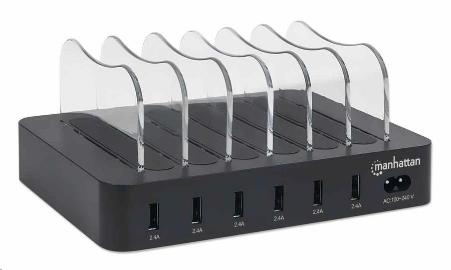 Manhattan USB nabíjacia stanica, 6-portová USB nabíjacia stanica, USB-A, čierna