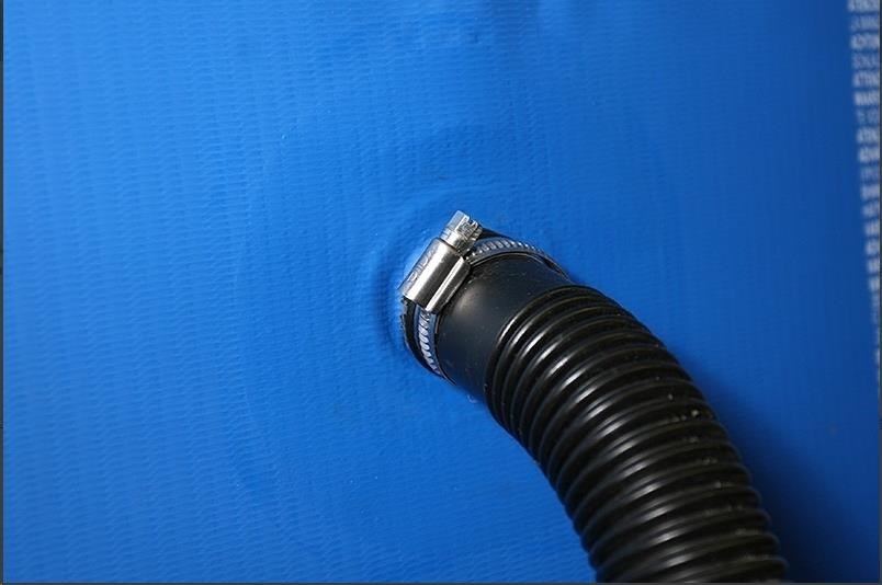 Bazén Tampa lze postavit bez stavebních úprav pozemku. Stačí pouze nafouknout horní prstenec a začít napouštět vodu. Stoupající vodní hladina sama vypne stěny bazénu.