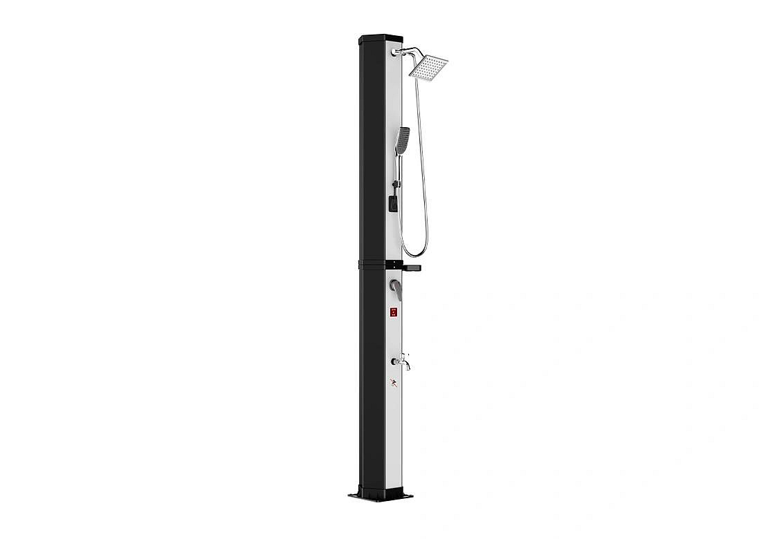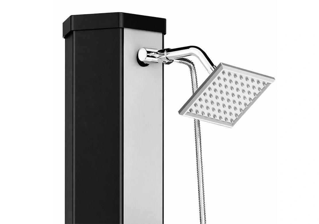 Zahradní dvoudílná a skladná sprcha DUO v oktagonovém provedení s objemem 60 l pro venkovní použití zajistí ohřev vody přiváděné ze zahradní hadice a tím perfektní pocit pohodlí při sprchování teplou nebo vlažnou vodou. Sprcha má pákovou baterii, ruční sprchu i kohoutek na oplach nohou. Ohřev vody zajišťuje sluneční záření a tělo sprchy, které funguje jako solární kolektor. Pro sprchování musí být zahradní sprcha stále napojena na vodovodní řad. Není-li napojena, nelze se sprchovat. Sprcha se kotví pomocí 4 šroubů (nejsou součástí balení) pevně k zemi, čímž je zajištěna její perfektní stabilita.