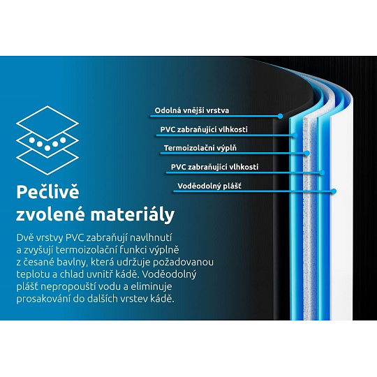 Tepelnoizolačná vrstva v podobe česanej bavlny udržuje požadovanú teplotu a chlad vo vnútri vane. - PVC zabraňujúce vlhkosti
