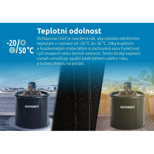 Vďaka odolnosti voči teplotám od -20 °C do 50 °C môžete káď využívať počas celého roka, bez ohľadu na počasie. Praktická vypúšťacia súprava umožňuje rýchle vypustenie vody, zatiaľ čo vonkajší kryt chráni káď pred nečistotami, prachom a hmyzom. Termokryt navyše udržiava optimálnu teplotu vody, minimalizuje tepelné straty a zvyšuje energetickú úspornosť. Tieto vlastnosti spolu s jednoduchou manipuláciou robia z ochladzovacej kádi ideálneho spoločníka na záhradu, terasu či do saunového priestoru.