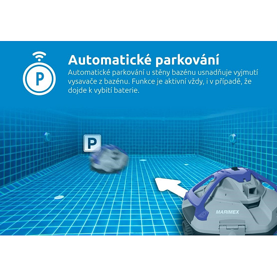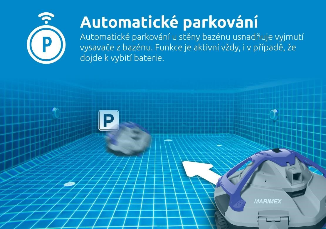 - automatické parkovanie - pri stene pre jednoduché vybratie z bazéna aj v prípade vybitia batérie