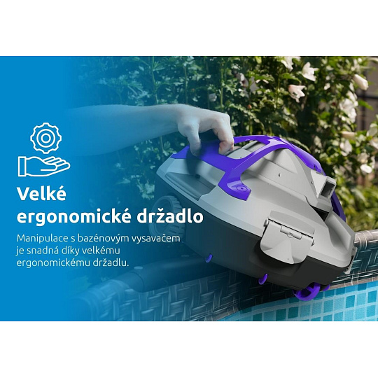 Vysávač je navrhnutý tak, aby jeho používanie bolo čo najjednoduchšie. Veľké ergonomické držadlo zabezpečuje pohodlnú manipuláciu, zatiaľ čo funkcia automatického parkovania pri stene uľahčuje vybratie vysávača z bazéna, a to aj v prípade vybitej batérie. Ventil pre rýchle vypustenie vody navyše umožňuje jednoduchú údržbu pred uložením.