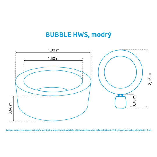 - Vonkajší priemer: 180 cm (po naplnení vodou, tolerancia ± 5%)