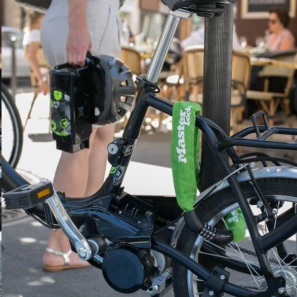 Posilnený oceľový reťaz s integrovaným kombinovaným zámkom je 90 cm dlhý a obsahuje oceľové spojky s priemerom 8 mm, ktoré odolávajú rezaniu. Nylonový kryt reťaze zabraňuje poškriabaniu. Zámok obsahuje resetovateľnú kombináciu 4 číslic.