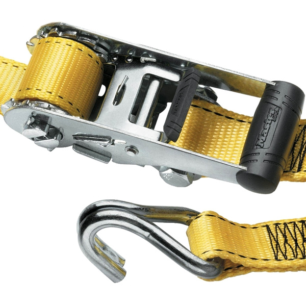 Upínací pás s ráčnou zakončený háčiky.