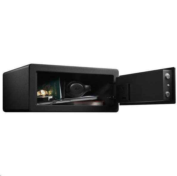 Startovacia stanica na batérie a univerzálny kľúč zabezpečujú, že budete mať vždy prístup k sejfu, a to aj v prípade vybitých batérií. Vnútorné ochranné polstrovanie udržiava obsah počas skladovania chránený pred poškriabaním.
