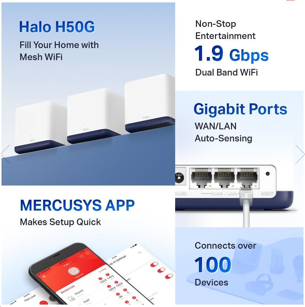 MERCUSYS Halo H50G(3-pack) [AC1900 Whole Home Mesh Wi-Fi System]