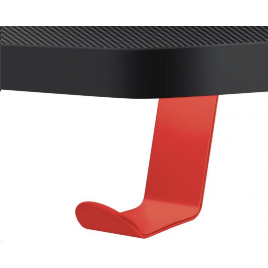 - Oceľový držák na slúchadlá s možnosťou variabilného umiestnenia na ľavej alebo pravej strane stola