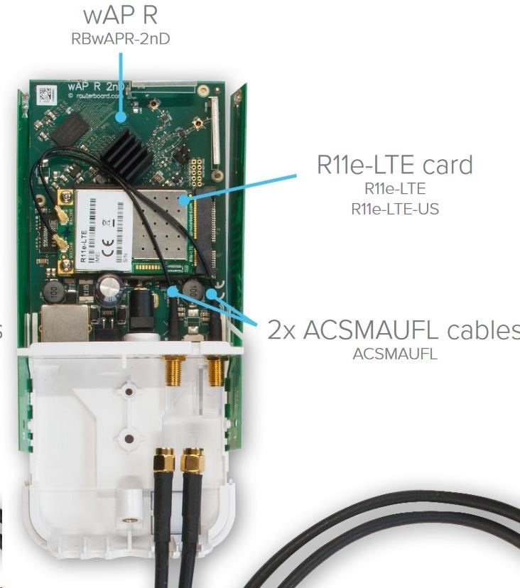 ACSMAUFL je minipigtail s u-konektormi.Fl samica SMA. Tento pigtail je pripojený medzi kartu LTE (napr. v súprave wAP R) a vonkajší kábel RF. Celková dĺžka minipigtailov je 15 cm...