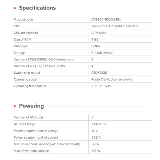 MikroTik CRS804-4DDQ-hRM 400GB Cloud Router Switch CRS804 DDQ