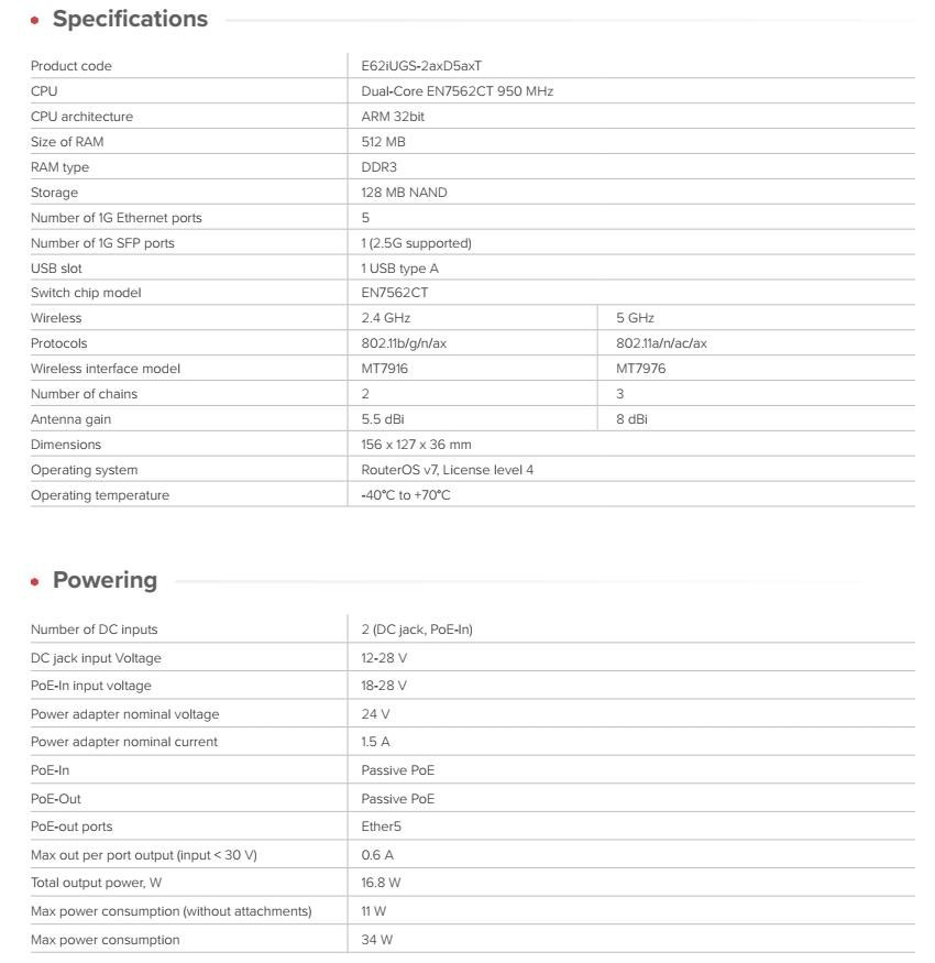 MikroTik E62iUGS-2axD5axT 2,4/5GHz WiFi 6 router hAP ax S