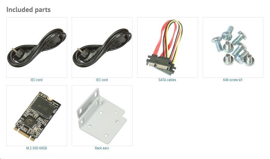 Balenie obsahuje: RB1100AHx4 v hliníkovej skrini 1U, integrovaný napájací zdroj, 2x napájací kábel, kábel SATA, M.2 SSD 60 GB, montáž do stojana Technické špecifikácie