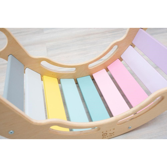 Montessori duhová houpačka 5in1 natur, lakované okraje, duhové desky