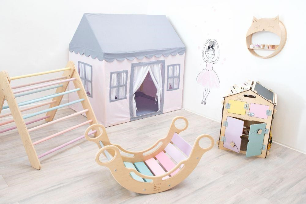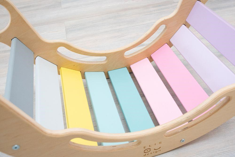 Montessori duhová houpačka 5in1 natur, lakované okraje, duhové desky