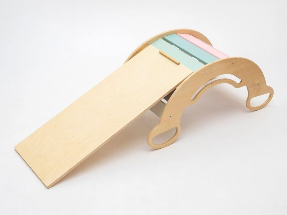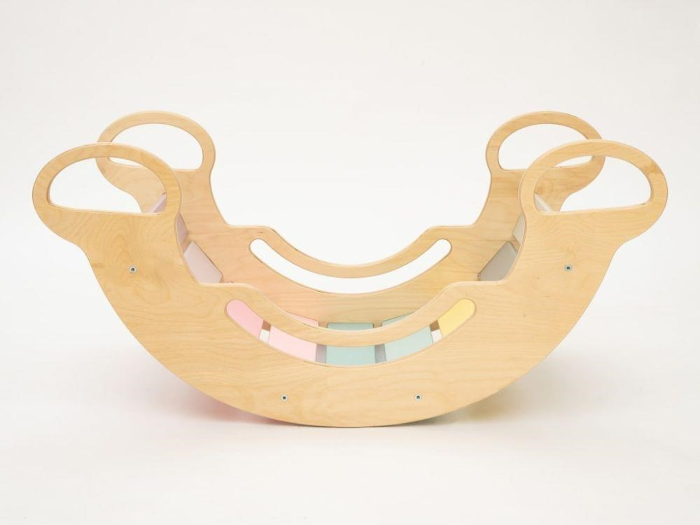 Montessori detská hojdačka smile 6in1 určite vyčarí úsmev na tvári vašej dievčatka alebo chlapca. Svojím dizajnom, pastelovými farbami a širokým úsmevom bude denne lákať deti k zábavnej hre aj príjemnému houpaniu. Jej využitie je všestranné, môže byť hojdačkou, šmykľavkou, lezeckou stienkou, skrýšou aj sedacou časťou, pri doplnení obojstranným doskou aj detským nábytkom. Obojstranná doska nie je súčasťou hojdačky. Vďaka jemným pastelovým farbám je vhodná do každého interiéru. Vyrobená je z tých najkvalitnejších materiálov, ručne dohladka opracovaná a lakovaná farbami s atestom. Montessori hojdačka smile je širšia než naše Montessori hojdačky 5in1, preto k tejto hojdačke ponúkame aj špeciálnu obojstrannú dosku, ktorá je doplnkom ku hojdačkám smile. Vďaka doske jednoducho premeníte hojdačku smile na detský stolík. Obojstranná doska nie je súčasťou hojdačky, pre využitie hojdačky ako nábytku je nutné dosku samostatne dokúpiť.