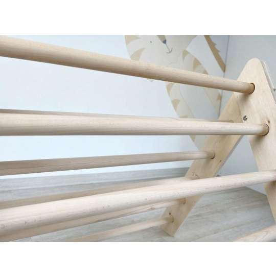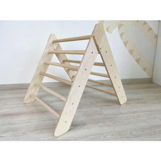 Montessori Piklerov trojuholník ponúka deťom možnosť pohybovej realizácie podľa vlastných schopností a odvahy. Deti sa úplne prirodzene naučia rozoznať a rešpektovať svoje možnosti a mieru odváhy, zároveň ich obratnosť bude stále rásť. Schodík má bezpečnú výšku, príslušenstvo je akurát široké pre pohodlné držanie a navyše je vybavené systémom proti otáčaniu príčníkov.