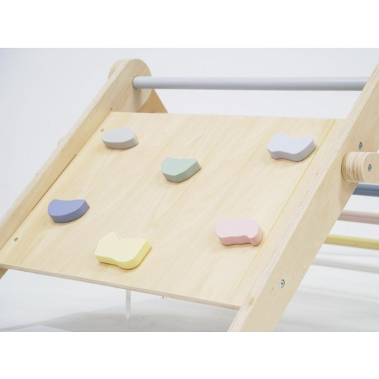 Montessori rostoucí Piklerové trojúhelník 3v1 s activity boardem a prknem 2v1 - pastel - 2. jakost