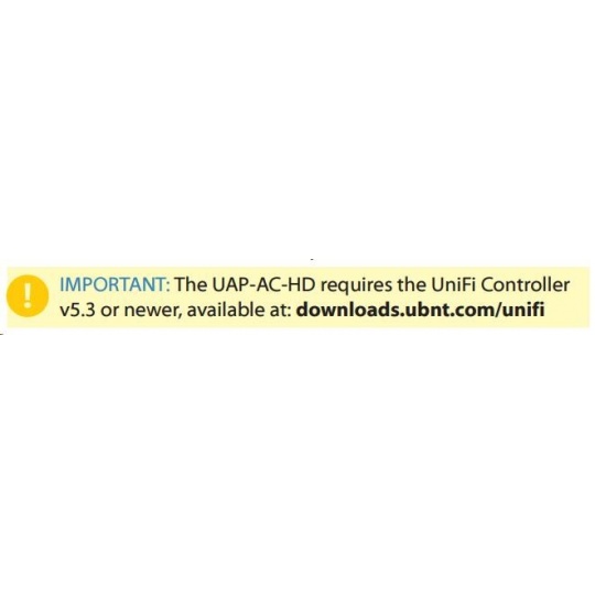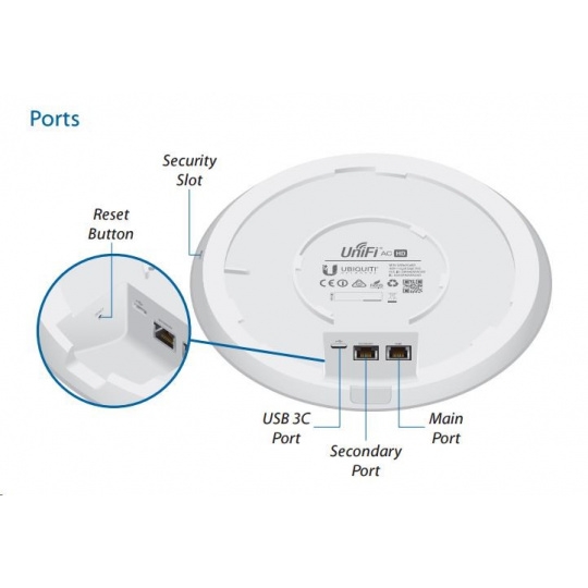 uniFi AP AC HD je prvým zariadením 802.11ac wave2 AP od Ubiquiti s celkovou priepustnosťou až 2533Mbps (2.4GHz 800Mbps + 5GHz 1733Mbps), má 4x4 MU-MIMO všesmerové dvojpásmové polarizácie. 3dBi antény pre 2.4GHz a 4dBi pre 5GHz s rádiovým výkonom do 25dBm pre obe frekvencie 2.4 a 5GHz súčasne. Podporuje 802.11a/b/g/n/ac/ac wave2, má dve gigabitové.ethernet. porty (druhý je v mostíku). Môže byť napájaný prostredníctvom aktívneho PoE podľa 802.3at alebo pasívne (48 V DC), adaptér PoE je súčasťou dodávky (pasívne). Maximálna spotreba energie je 17 W.