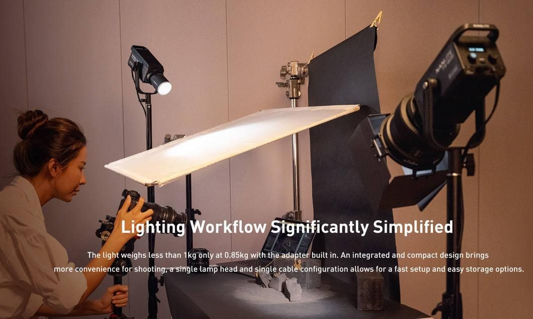 Nasviťte si svoje live streamy, videá a fotografie pomocou tohto malého svetla, ktoré váži iba 0,87 kg. Toto kompaktné, výkonné a univerzálne svetlo má reflektor 45°, ktorý ponúka výkon 6 228 lumenov. Vo vzdialenosti 1 metra vyžaruje 13 360 luxov svetla vyváženého ako denné svetlo s teplotou 5 600 K. Svetlo má navyše rozsah farebných teplôt 2700–6500K a vysoké indexy CRI/TLCI s hodnotami 96/97, čo zabezpečuje pokročilé a presné podanie farieb. Dvoubarevné prevedenie svetla ponúka ako teplejšie umelé tóny, tak chladnejšie tóny denného svetla a pri tom zachováva príjemné tóny pleti.
