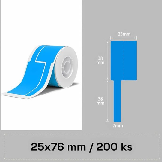 Balíček obsahuje 1x valec modrých samolepiacich štítkov Niimbot na káble o rozmere 25x76mm – 200ks.