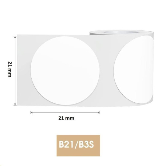 Balenie obsahuje 1x rolu bielych samolepiacich štítkov Niimbot o rozmere 21x21mm - 300ks.