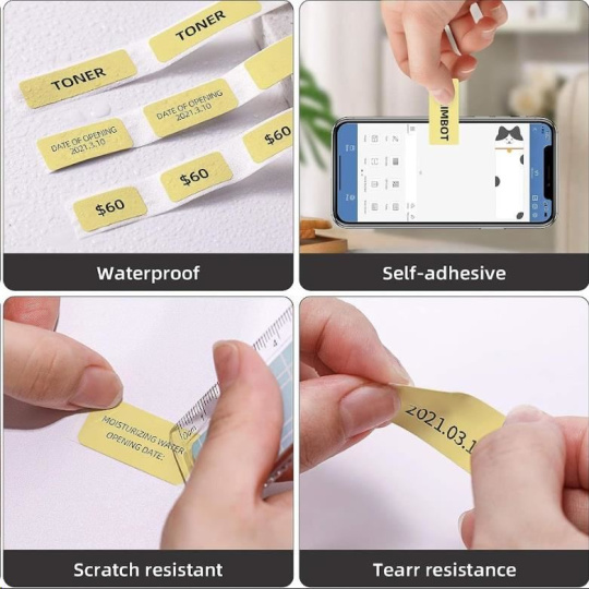 Nalepovacie štítky pre štítkovače a tlačiarne Niimbot kompatibilné s modelmi Niimbot D11 a D110. Balenie obsahuje 1x rolku žltých samolepiacich štítkov Niimbot o rozmere 12x40mm – 155ks s vylepšenou technológiou - papier je pokrytý vrstvou fólie, vďaka ktorej je papier pevnejší. Rolka je určená pre priame termálne tlač pomocou kompatibilnej tlačiarne Niimbot. Štítky majú lepiacu vrstvu, ktorá účinne priľne na rôzne materiály. Perforácia medzi jednotlivými štítkami uľahčuje ich rozdelenie po tlači. Etikety značky NIIMBOT sú vyrobené z vysoko odolných materiálov a po tlači sú laminované, čo zaručuje ich dlhú životnosť. Sú odolné voči mrazu, olejom, vode a majú zvýšenú odolnosť proti slnečnému žiareniu. Vďaka tomu môžete mať istotu, že vaše etikety zostanú čitateľné a pevne prichytené dlhý čas.