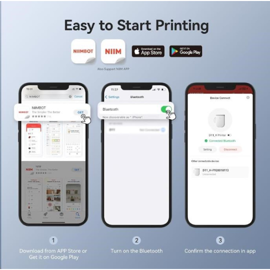 Zabudnite na zdĺhavé a komplikované procesy tlače štítkov. S novinkou NIIMBOT D11-H je tlač štítkov hračkou. Vďaka Bluetooth pripojeniu a lítiovej batérii môžete polepiť bez obmedzení až 5 hodín. S NIIMBOT D11-H môžete jednoducho označovať veci v kancelárii, škole, obchode a na mnoho ďalších miestach. Jej kompatibilita so systémami Android a iOS znamená, že môžete tlačiť priamo zo svojho smartfónu alebo tabletu, čo zabezpečuje maximálne pohodlie a efektivitu.