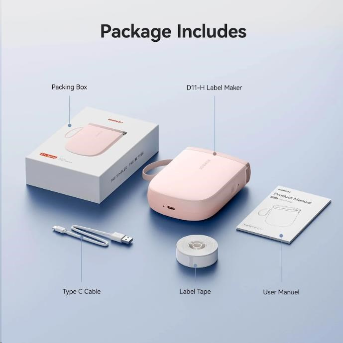 NIIMBOT D11 je tlačiareň štítkov, ktorá kombinuje výkon, pohodlie a kvalitu. So svojou jednoduchou obsluhou a vynikajúcimi funkciami vás prekvapí, aká rýchlo a jednoducho môžete vytvárať profesionálne štítky.
