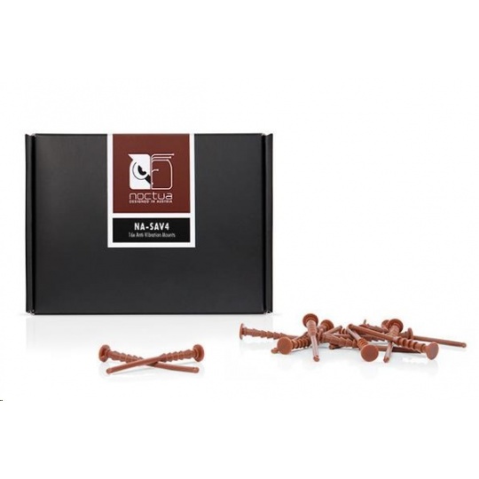 Tieto skrutky nahrádzajú štandardné skrutky na upevnenie ventilátorov a majú anti-vibračný efekt. Špecifický dizajn umožňuje pohodlnejšiu inštaláciu v priestorovo obmedzenom prostredí počítača a vďaka použitiu vysoko kvalitnej gumy sú tieto úchyty mimoriadne jemné a zároveň odolné voči vytrhnutiu. Nahradením štandardných skrutiek za NA-SAV4 úchyty môžete výrazne znížiť hluk spôsobený vibráciami.