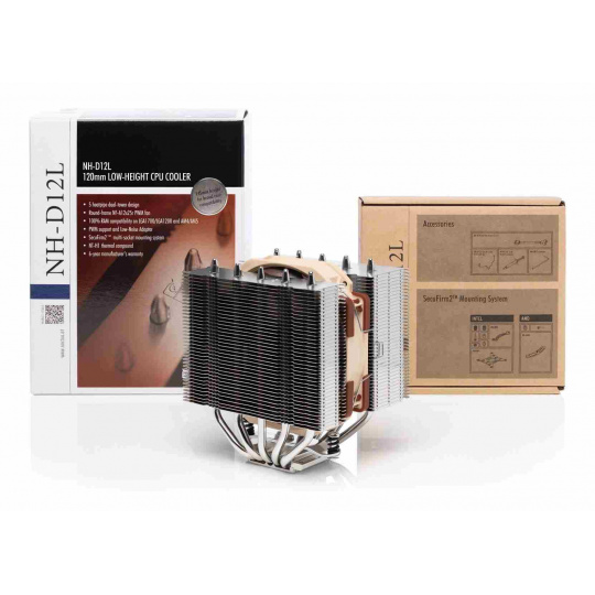 Nízky 120mm chladič CPU Noctua NH-D12L kombinuje mimoriadne efektívne chladenie s neobvykle širokou kompatibilitou aj s menšími PC skrinkami - teraz už nepotrebujete obrovské skrine, aby ste ochladili aj tie najvýkonnejšie stroje. Aj napriek menšej konštrukcii dokáže NH-D12L chladiť efektívnejšie ako aj popredné 120mm chladiče, ako je napríklad známy model NH-U12S. Pri montáži jedného ventilátora je vďaka asymetrickej konštrukcii 100% kompatibilný s RAM aj u patic AMD AM4/AM5 a Intel LGA1200/LGA1700. Perfektná voľba pre tých, ktorí potrebujú špičkový výkon, ale nemajú dostatok priestoru na väčší chladič Noctua NH-U12A.