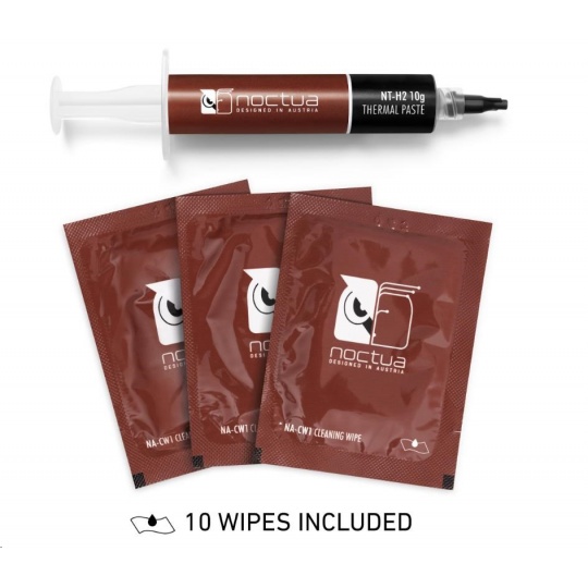 NT-H2 je ďalšia vylepšená druhá generácia oceneného hybridného tepelného vedenia Noctua. Kombináciou osvedčených vlastností ikonickej pasty NT-H1, vynikajúcej ľahkosti aplikácie a proslulej dlhodobej stability s novým, jemne vyladeným zložením mikročastíc pre ešte lepší tepelný výkon je NT-H2 pastou pre nadšencov s najvyššími nárokmi. Či už ide o vzduchové alebo vodné chladenie, aplikácie pre CPU alebo GPU, pretaktovanie alebo tiché systémy: NT-H2 bude dôsledne poskytovať výborné výsledky a vďaka priloženým čistiacim utierkam sa rovnako ľahko odstraňuje, ako nanáša.