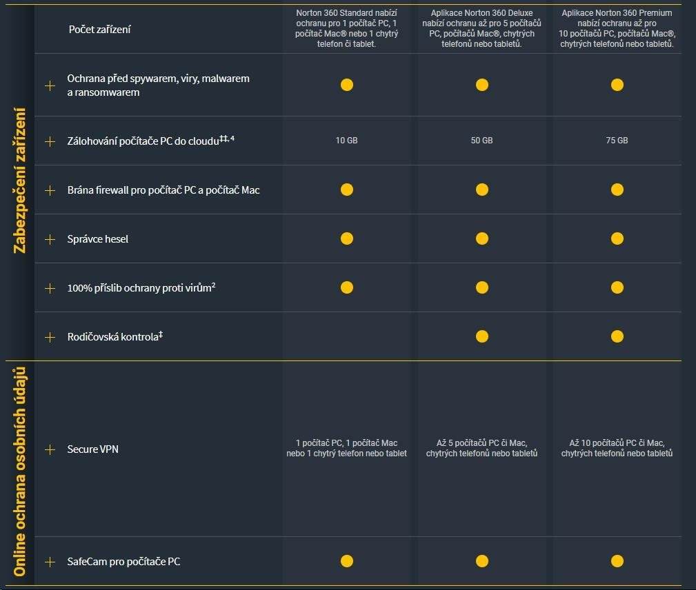 Elektronická licencia Norton 360 Deluxe poskytuje komplexnú ochranu proti škodlivému softvéru až pre 5 počítačov PC, Mac, zariadení so systémom Android alebo iOS, ako aj rodičovskú kontrolu, ktorá pomáha chrániť vaše deti online, správcu hesiel na ukladanie a správu hesiel a funkciu zálohovania z PC do cloudu. Norton 360 Deluxe obsahuje aj sieť VPN pre 5 zariadení a aplikáciu na ochranu fotoaparátu pre počítače. Určené pre nových používateľov a na obnovenie licencií existujúcich používateľov