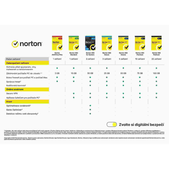 Norton AntiVirus Plus je ideálny pre 1 PC alebo Mac a poskytuje ochranu pred malvérom, spyvérom, ransomvérom, phishingovými útokmi a inými online hrozbami v reálnom čase. Norton AntiVirus je navrhnutý tak, aby poskytoval viacero vrstiev ochrany pre váš počítač PC alebo Mac® vrátane ochrany bránou firewall. Pomocou správcu hesiel môžete vytvárať, ukladať a synchronizovať všetky svoje heslá a bezpečnejšie sa prihlasovať na všetky webové stránky.